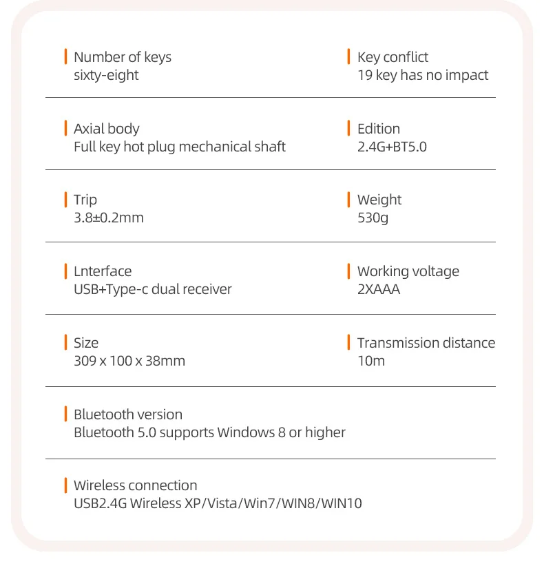 1. 2.4G/Bluetooth Wireless Dual Mode Mechanical Keyboard