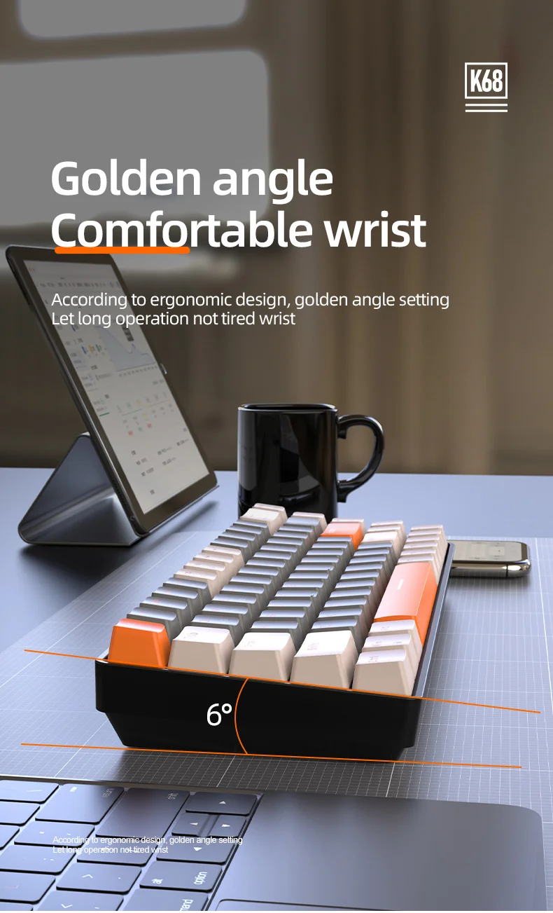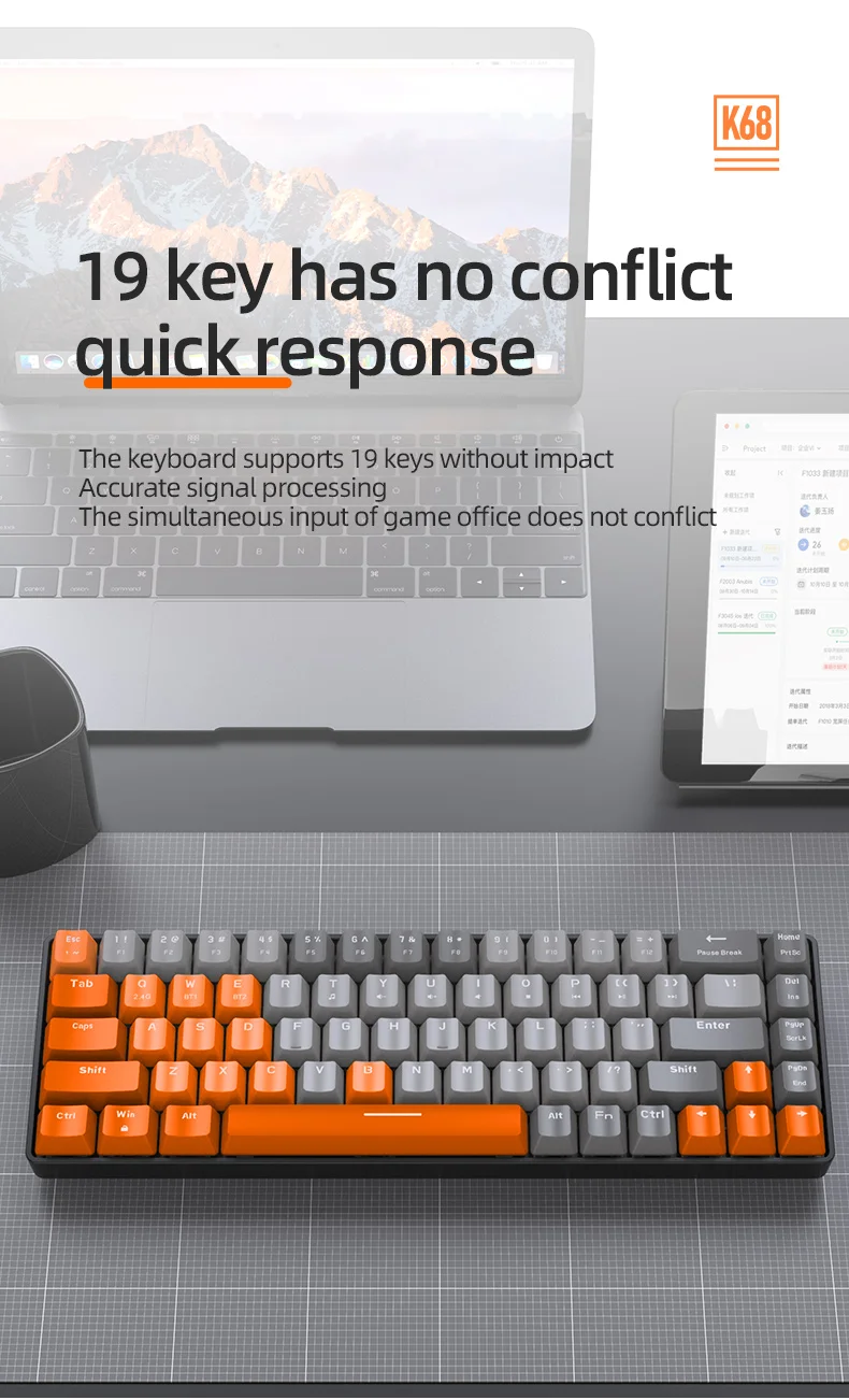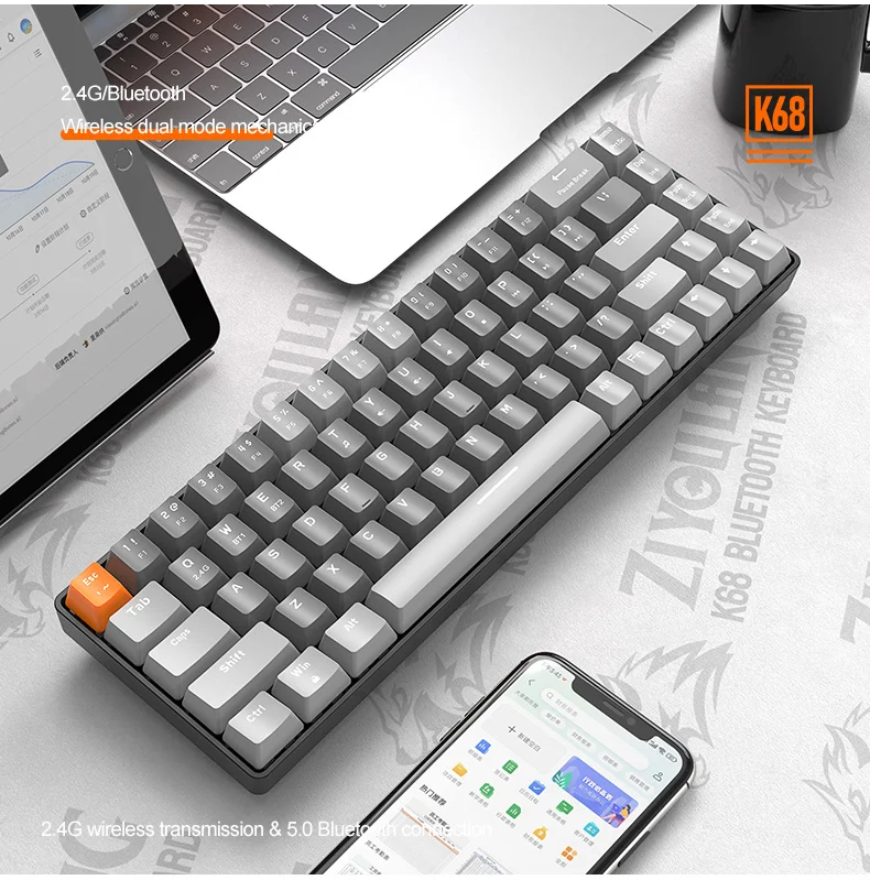 60% Dual Mode Wireless/Bluetooth Mechanical Keyboard Hot-Swappable Mini 68-Key Red Switch for PC iPhone iPad,K68 Keyboard