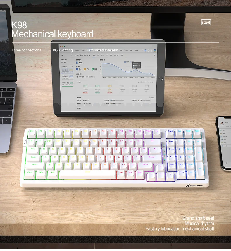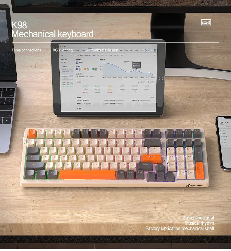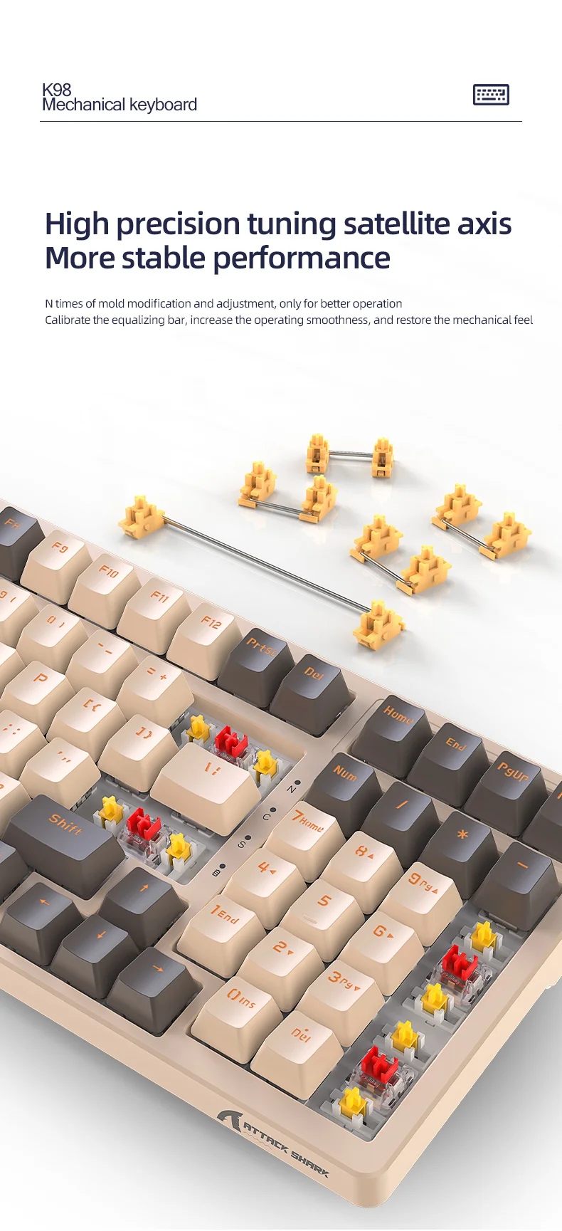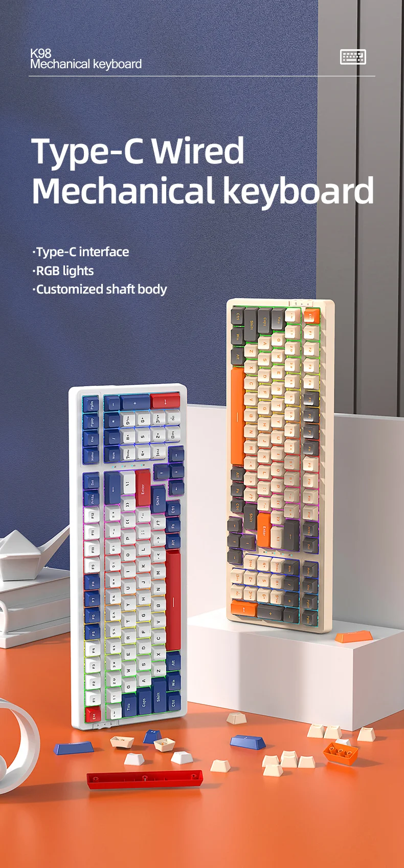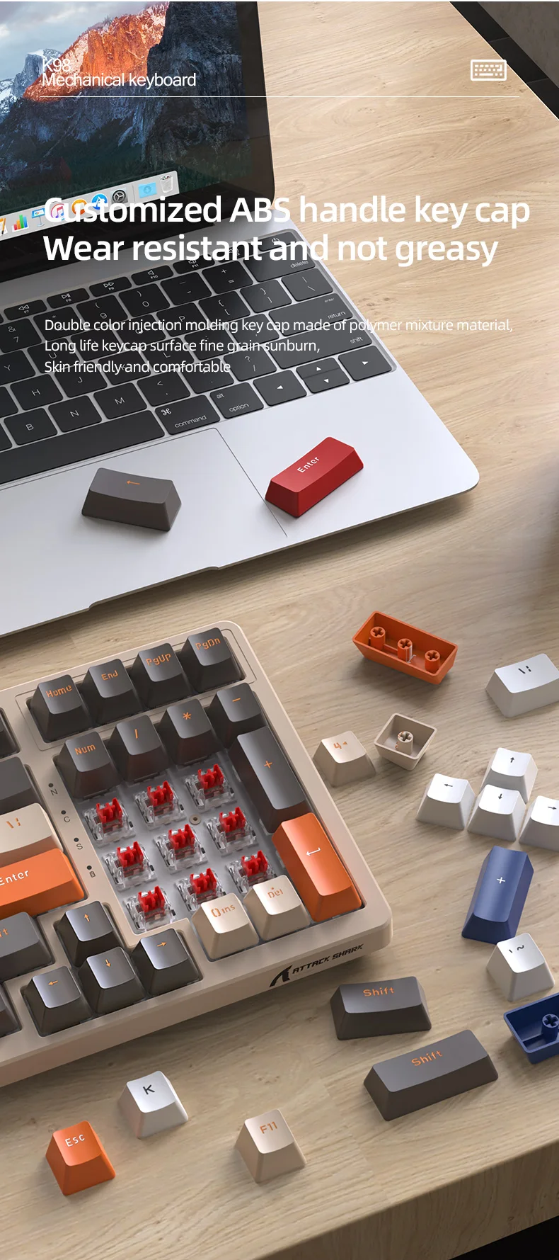 Attack Shark Wired Mechanical Keyboard ,Type-C Connection, Red Yellow Switch Custom RGB Effect Laptop,Mac,Android
