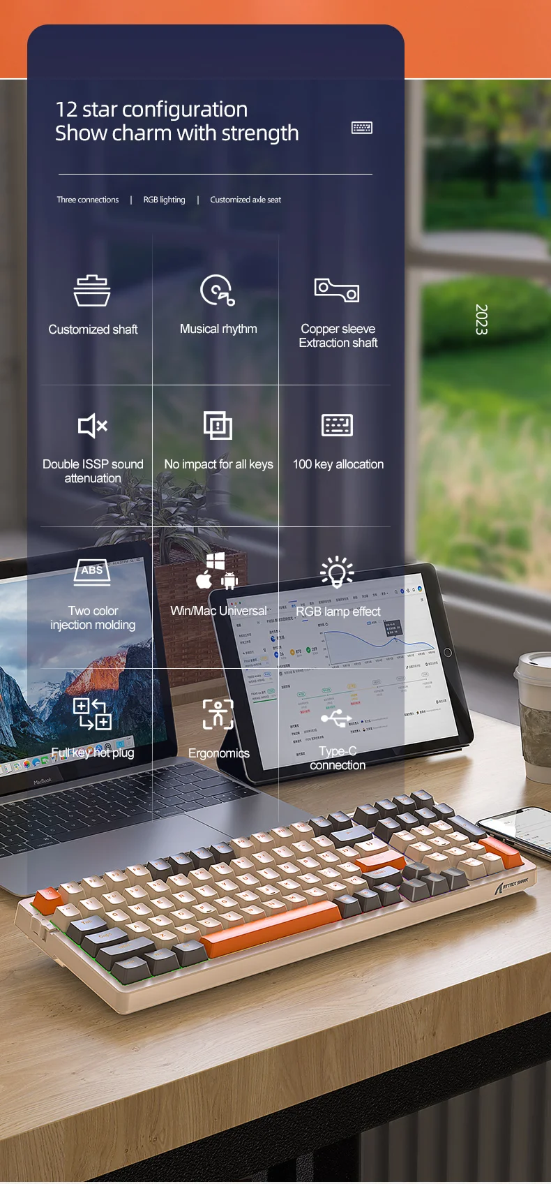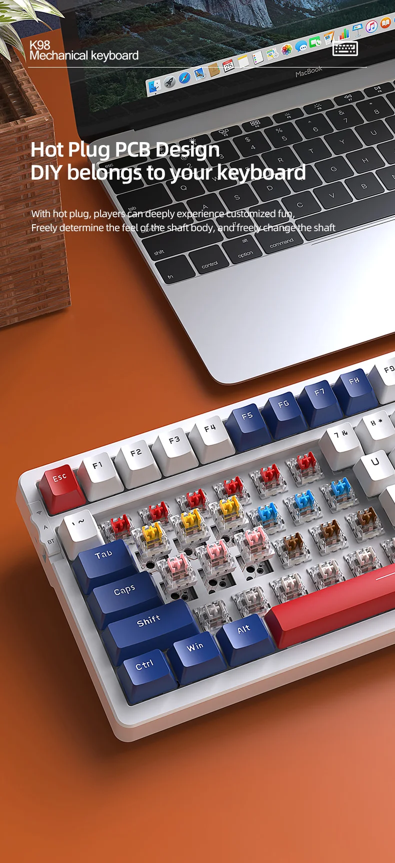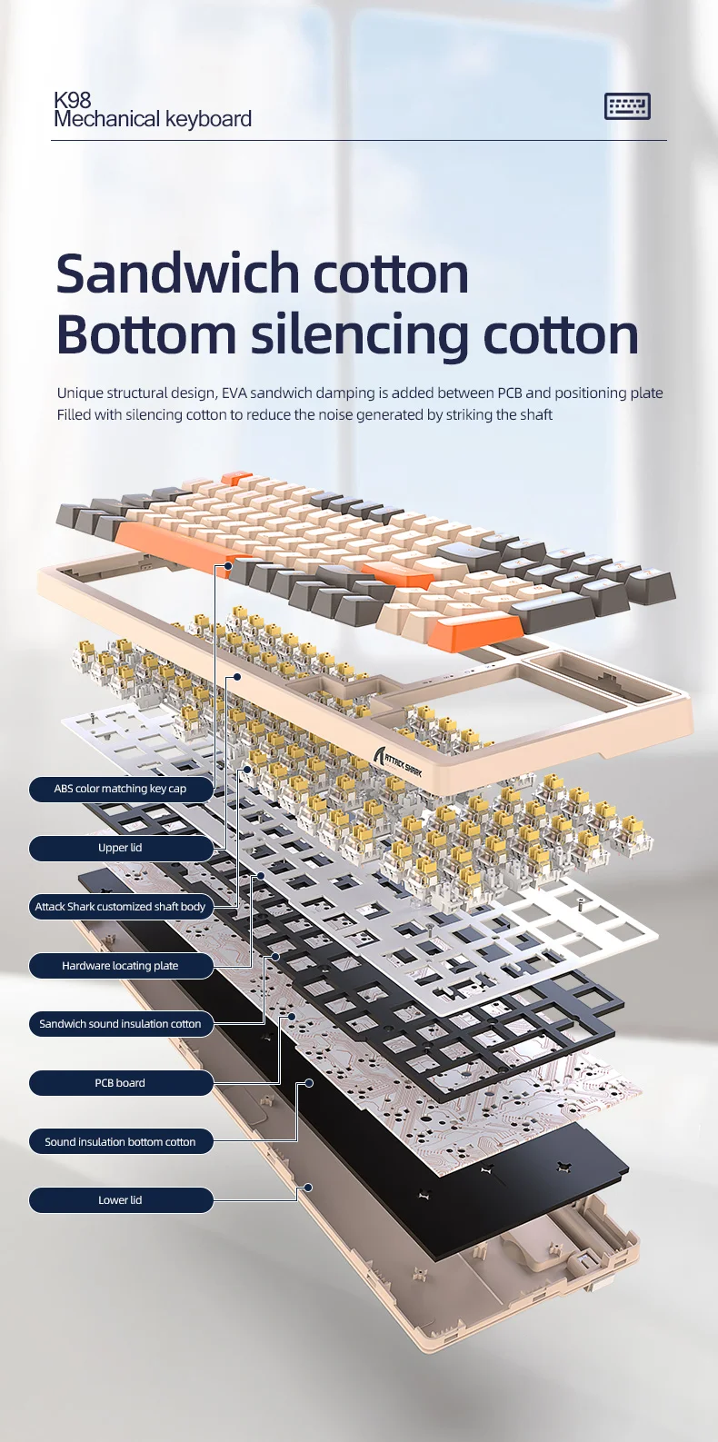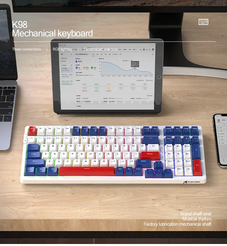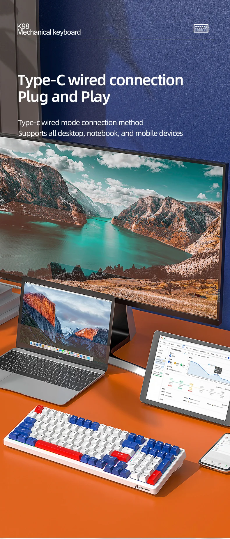 Attack Shark Wired Mechanical Keyboard ,Type-C Connection, Red Yellow Switch Custom RGB Effect Laptop,Mac,Android