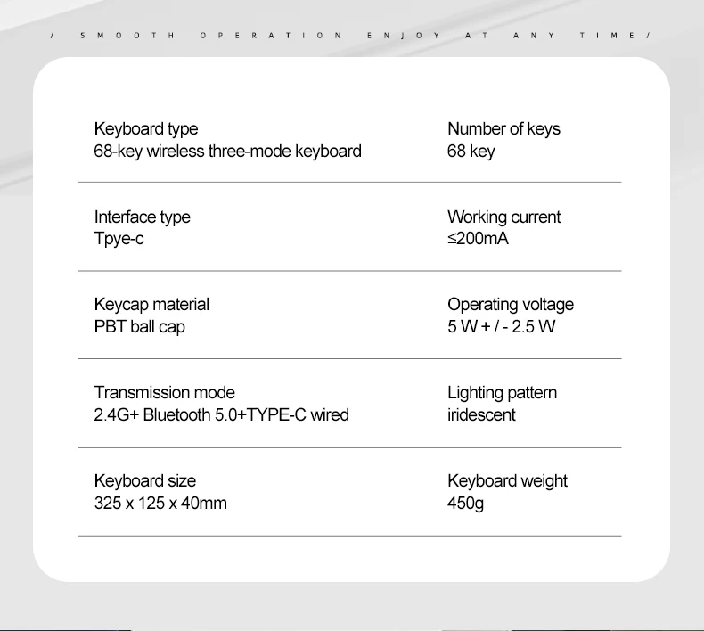 Keyboard type: 68-key wireless tri-mode keyboard