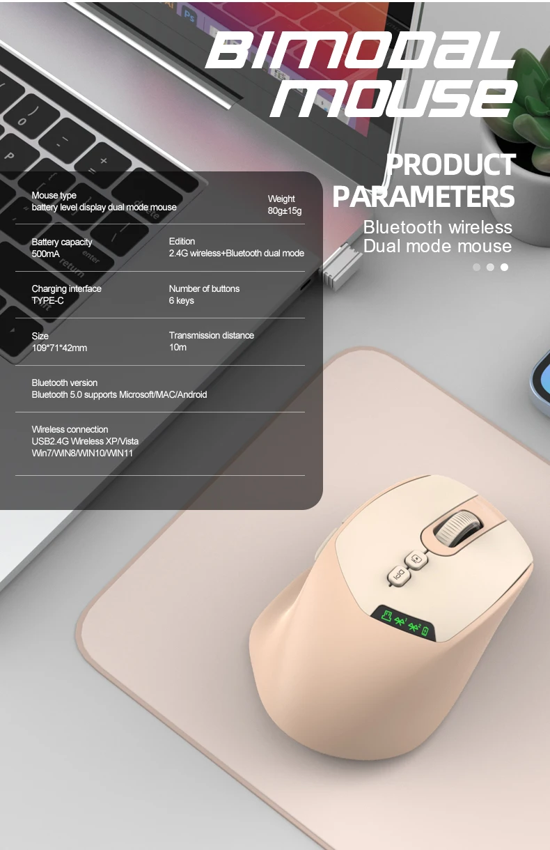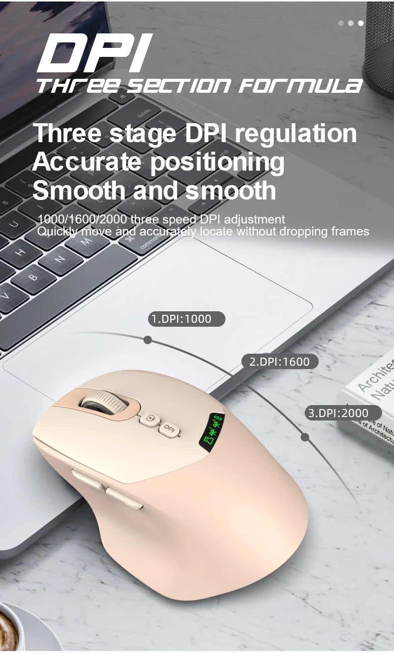 T02 Mute Wireless Mouse,With Display Screen, Noiseless Click,Bluetooth Dual-Mode,Wndows/Mac/IOS/Android